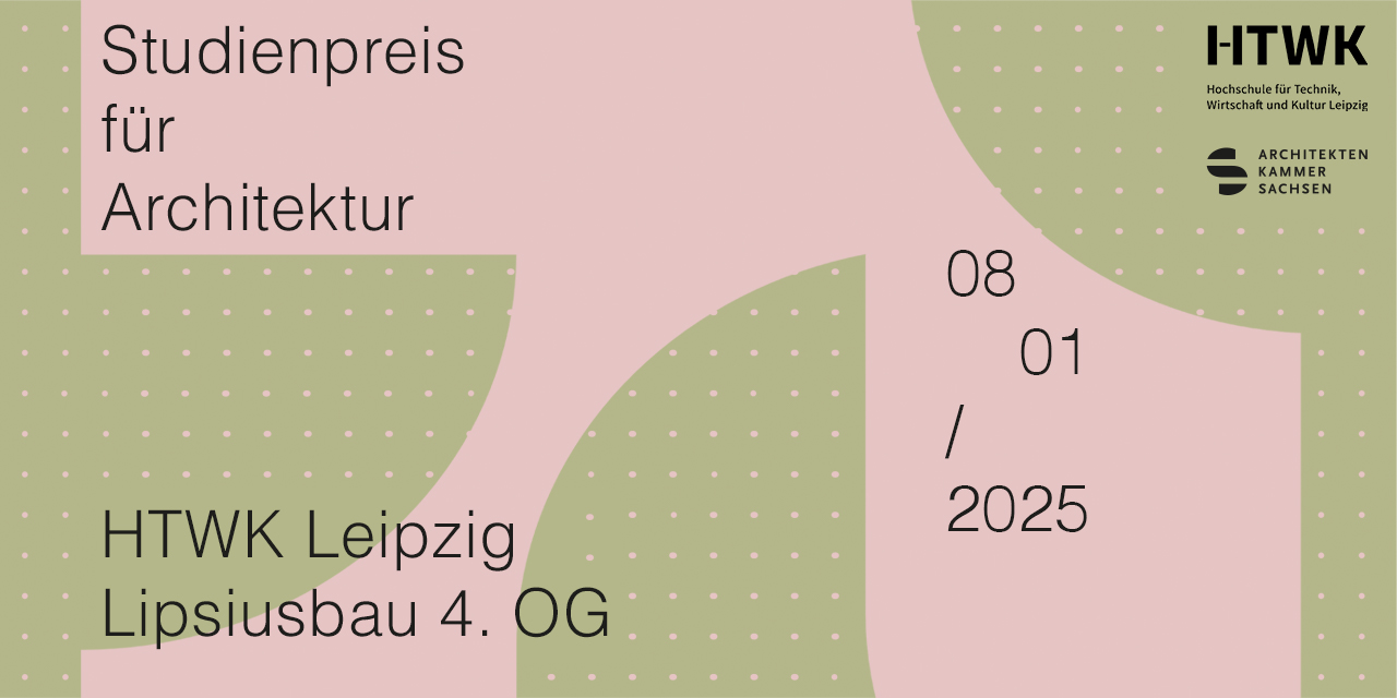 Der Studienpreis für Architektur, mit dem jährlich herausragende Entwurfs- und Seminararbeiten von Studierenden an der HTWK Leipzig gewürdigt werden, wird am 8. Januar 2025 verliehen. Der Preis geht auf eine langjährige Tradition zurück, allerdings war es hinsichtlich seiner Stiftung in den letzten Jahren zu Veränderungen gekommen. Mit der Preisverleihung 2025 verbindet sich eine neue Perspektive: Erstmalig stiftet die Architektenkammer Sachsen diesen Studienpreis mit einer Gesamtdotierung von 2.000 Euro. Zugleich bekräftigt sie, eine langfristige Stiftung des Studienpreises für Architektur an der HTWK Leipzig zu sichern und damit ihr Engagement zur Förderung des Nachwuchses von Architektinnen und Architekten zu unterstreichen. Aus diesem Anlass wird Andreas Wohlfarth, Präsident der Architektenkammer Sachsen, gemeinsam mit Christian Knoche, Vorsitzender der Jury, die einzelnen Preise und Anerkennungen in einer Festveranstaltung verleihen.